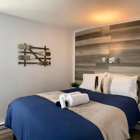 Le Loft Du Loch - Condo Pres Du Lac Et Des Montagnes! lägenhet är belägen 450 meter från Plage Magog i Magog och erbjuder sina gäster soldäck, solterrass och utomhusbassäng. Boendet ligger endast 7 minuters promenad från Le Vieux Clocher de Magog.
